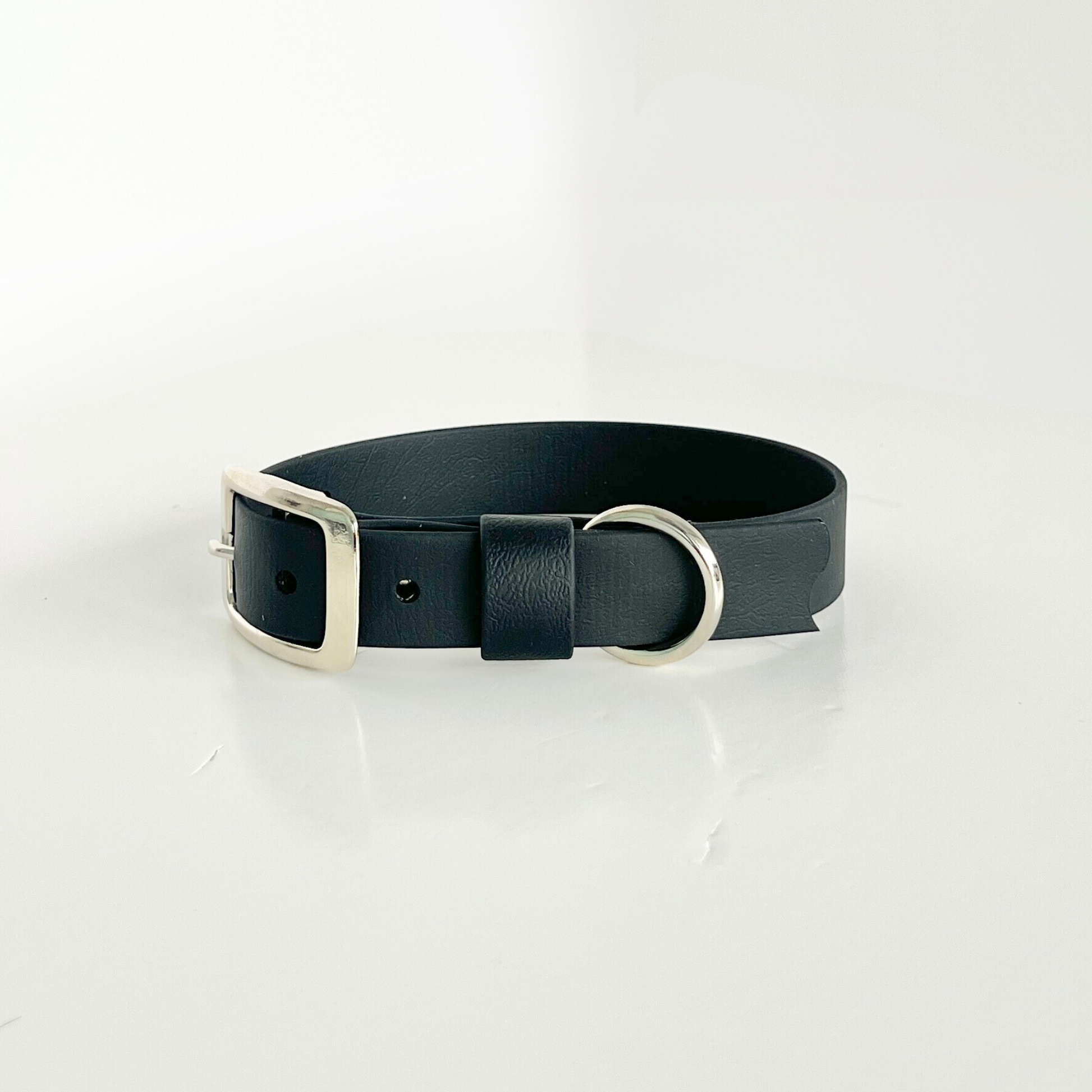 The Original Collar, our minimalist and weather-proof dog collar, in BLACK. It's waterproof, odour and grime resistant, making it incredibly easy to keep clean. Whether a casual walk in the city, or a adventurous hike through nature, these durable collars will hold up against the elements. Plus, they're intentionally minimalist to pair well with almost any outfit and gear.