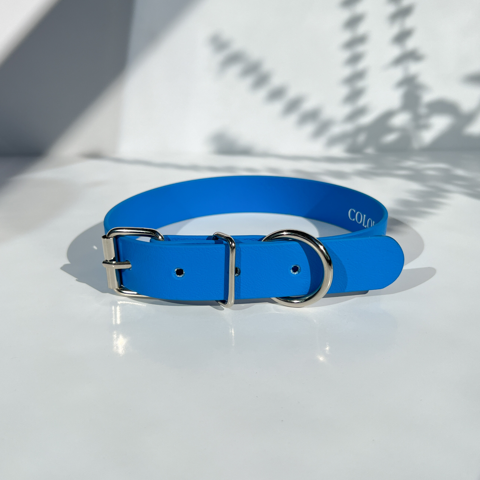 Durable polyester webbing, treated with a PVC coat and edge-sealed to repel water like no other. Waterproof, odour-resistant, and easy to wash dog gear. Whether a rainy hike through the woods, a run along a sandy beach, or a sunny walk through the city, the dog leashes and collars can be used on any adventure.