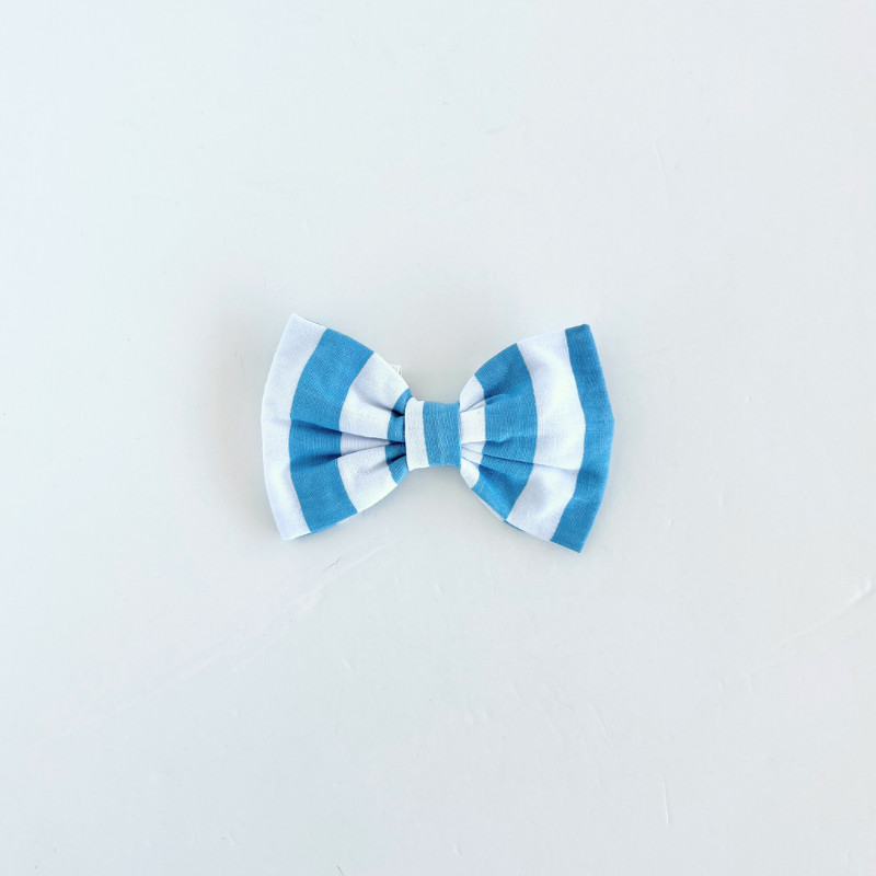 Cabana Blue Stripes Dog Bow in blue and white vertical stripes to complete your look!