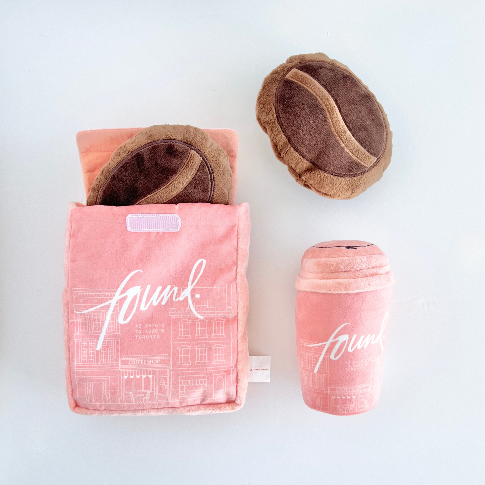 An exclusive collaboration between Found Coffee x Colours By Emma. Cups are developed with crinkles and a squeaker - your morning coffee just got so exciting for your dog! If the toys get dirty, throw them in the washing machine and air dry to maintain best toy conditions.