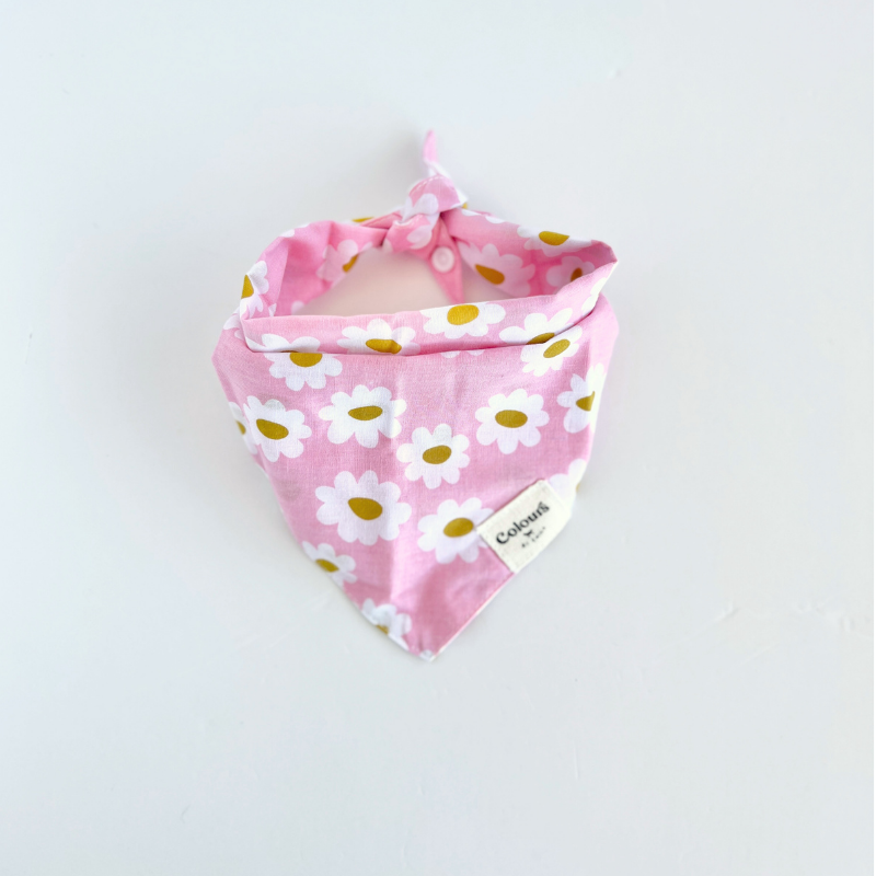 Pink Daisy Chains Dog Bandana in a pink floral pattern to complete your look!
