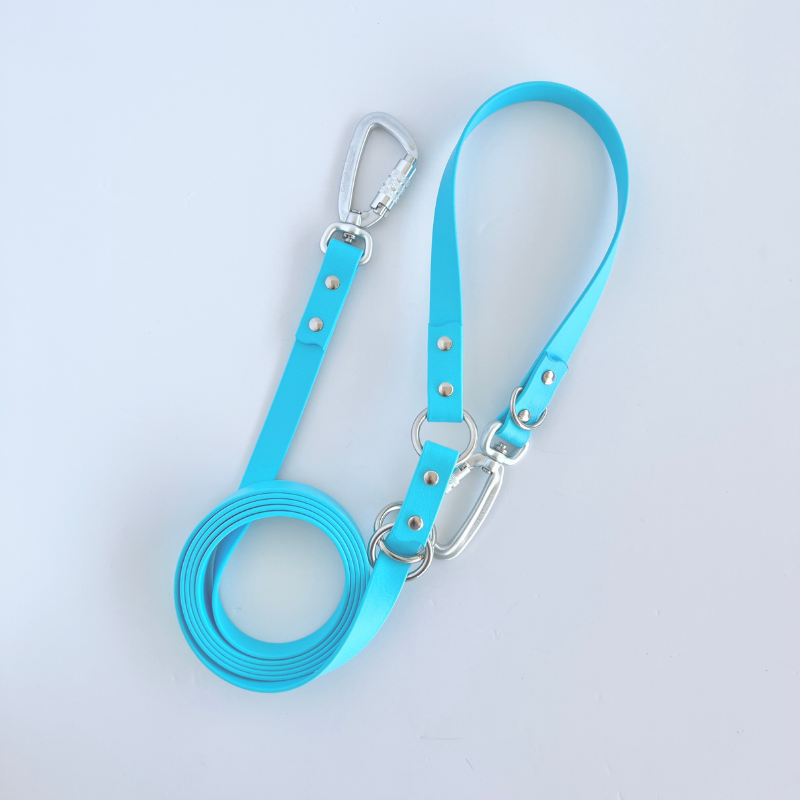 Durable waterproof and grime-resistant dog leash, that can be used in any weather. Convertible 3-in-1 dog leash - wear it cross-body, around the waist, or as a standard handle leash. Now available in SKY colour.