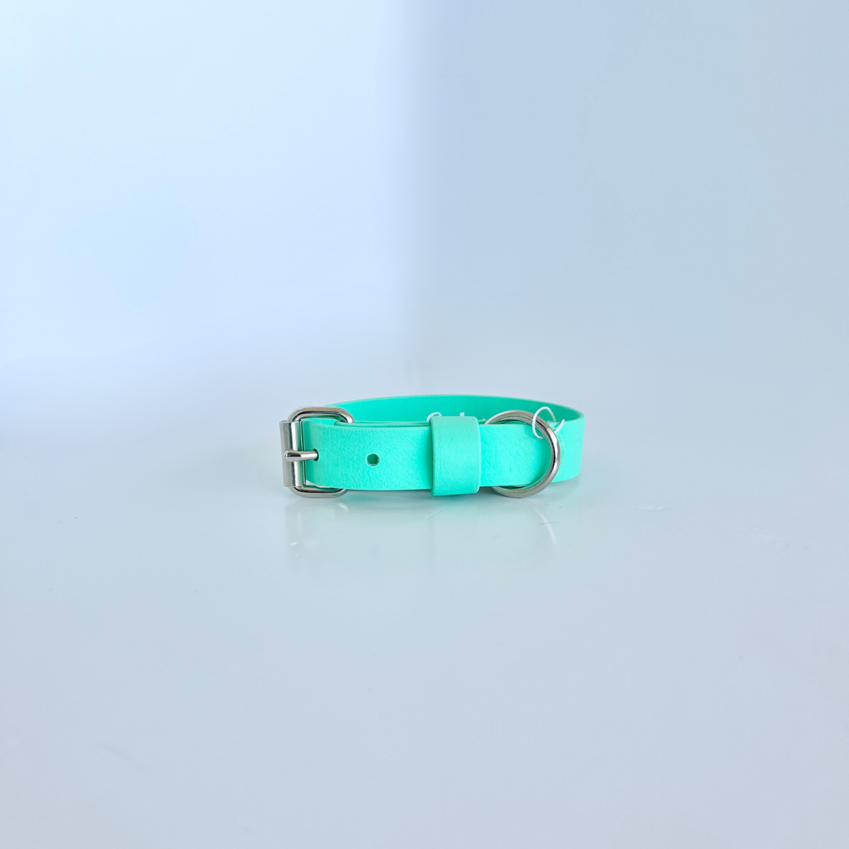 Durable polyester webbing, treated with a PVC coat and edge-sealed to repel water like no other. Waterproof, odour-resistant, and easy to wash dog gear. Whether a rainy hike through the woods, a run along a sandy beach, or a sunny walk through the city, the dog leashes and collars can be used on any adventure.