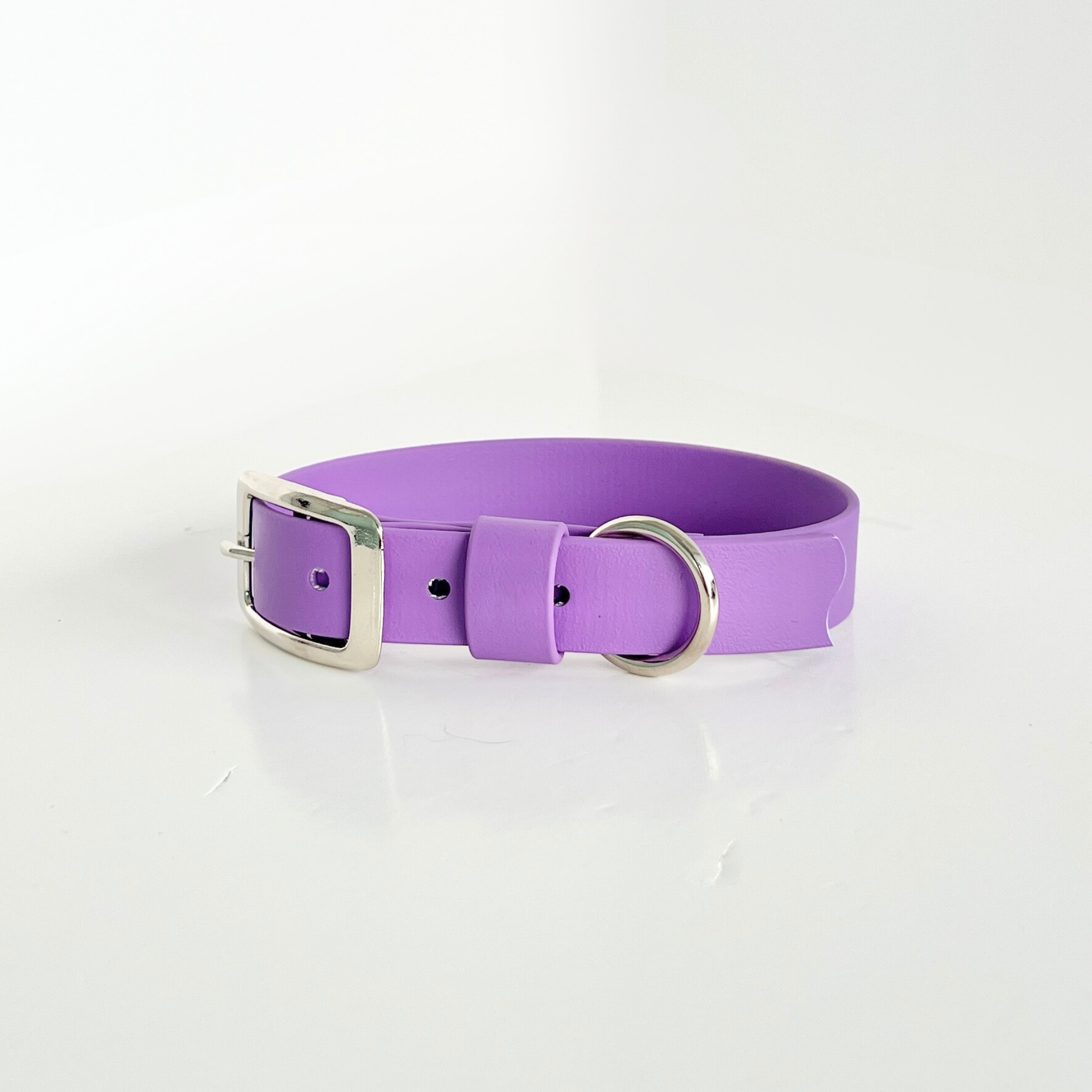 The Original Collar, our minimalist and weather-proof dog collar, in UBE. It's waterproof, odour and grime resistant, making it incredibly easy to keep clean. Whether a casual walk in the city, or a adventurous hike through nature, these durable collars will hold up against the elements. Plus, they're intentionally minimalist to pair well with almost any outfit and gear.