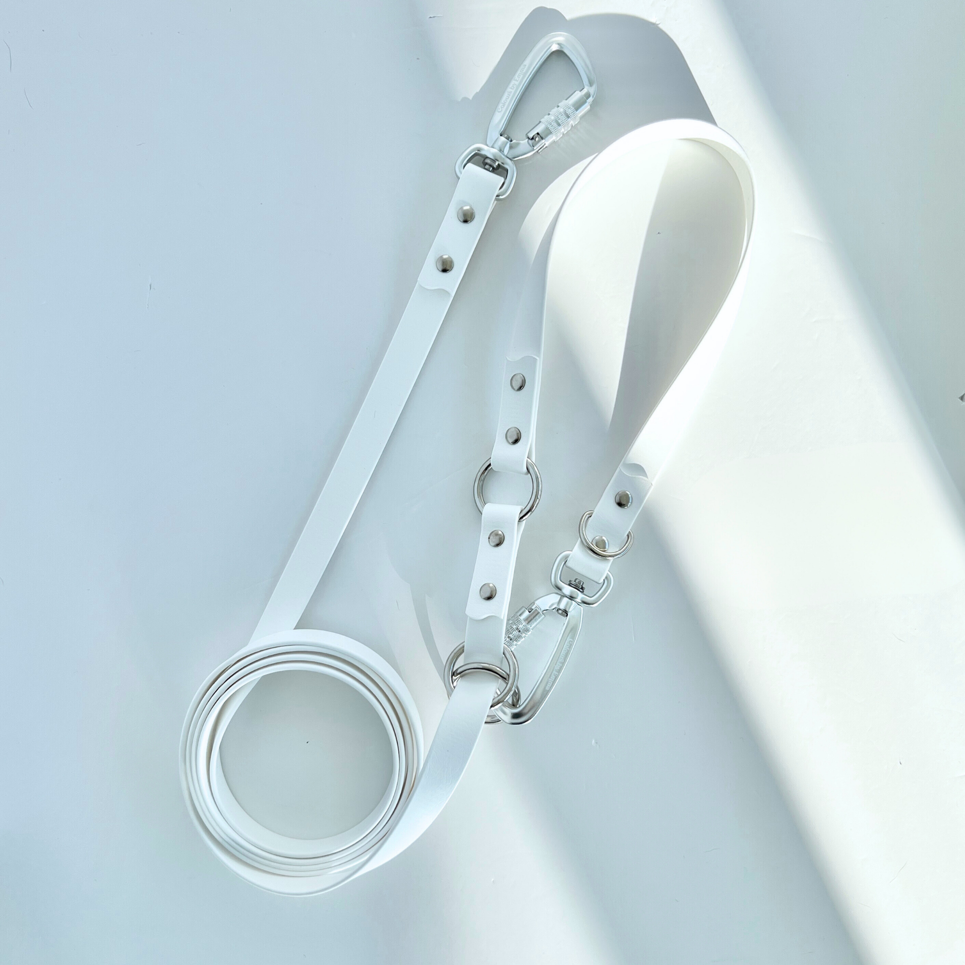 Durable waterproof and grime-resistant dog leash, that can be used in any weather. Convertible 3-in-1 dog leash - wear it cross-body, around the waist, or as a standard handle leash. Now available in WHITE colour.